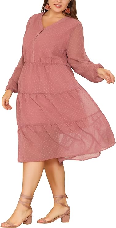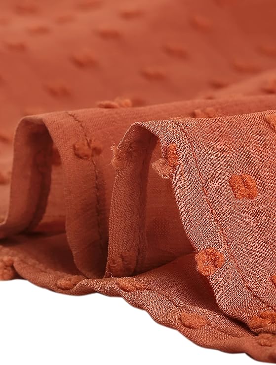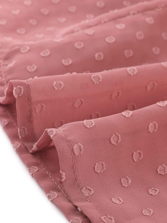 Featuring a bohemian design with a V neck, puff long sleeves, and an A-line tiered hem, these dresses offer a refreshing and breathable experience. Crafted from lightweight Swiss dot fabric, they exude a nostalgic 1970s feel.