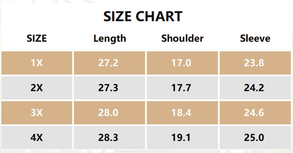 Sizes go up to 4X, so there's something for everyone. Just remember to consult the size chart below, and if you're between sizes, we recommend going up one size for the perfect fit.
