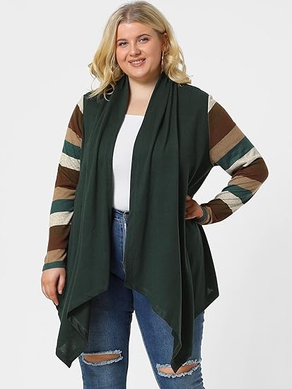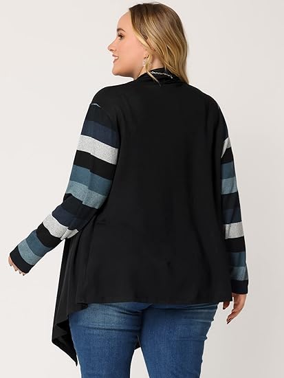 Whether you're dressing up for a night out or adding a layer of warmth to your everyday attire, the Handkerchief Hem Cardigan with Color Blocked Sleeves effortlessly combines fashion and functionality. Elevate your plus-size fashion experience with this carefully curated collection.