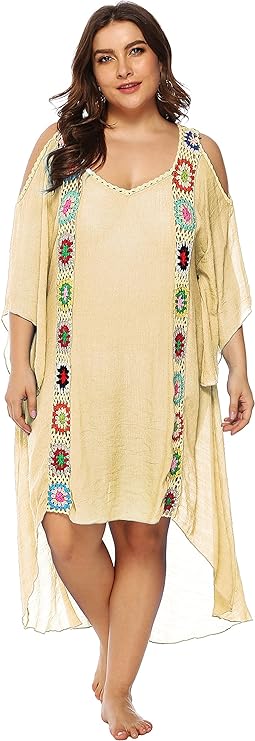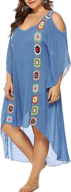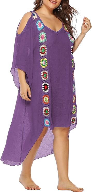 Boho Look Crochet Granny Square Beach Cover-Up for Plus Size Curves