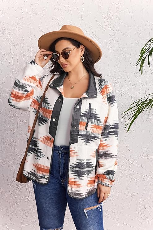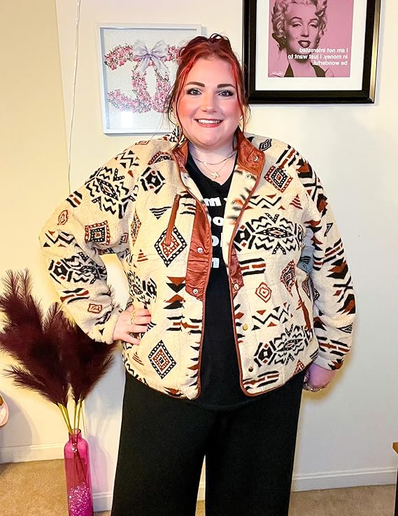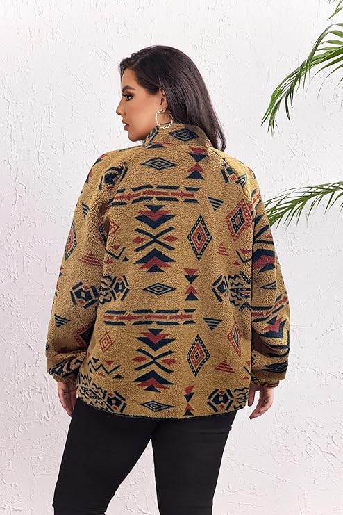 Featuring a striking Western Aztec print, this jacket effortlessly combines timeless design with modern flair, making it a versatile addition to your cold-weather wardrobe.Â
