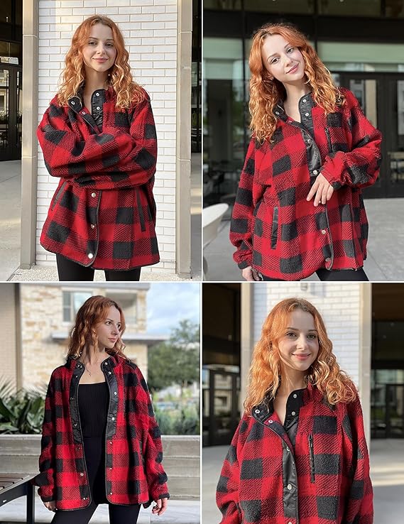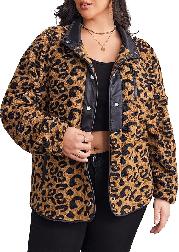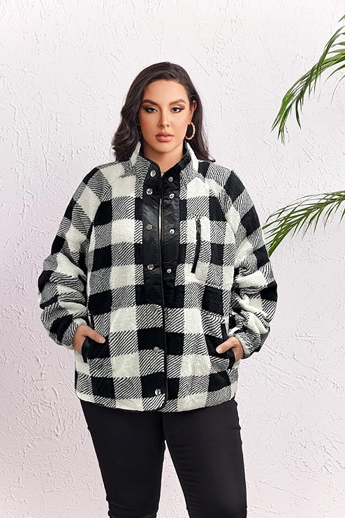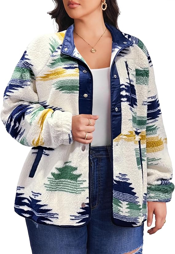 Stay cozy and stylish with our plus-size women's snap-button fleece jacket, crafted from 100% polyester for a soft, lightweight, and skin-friendly feel.