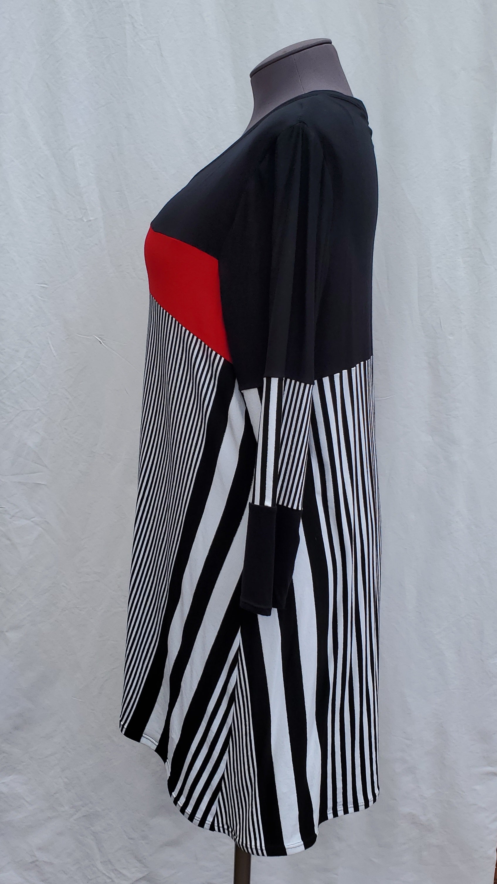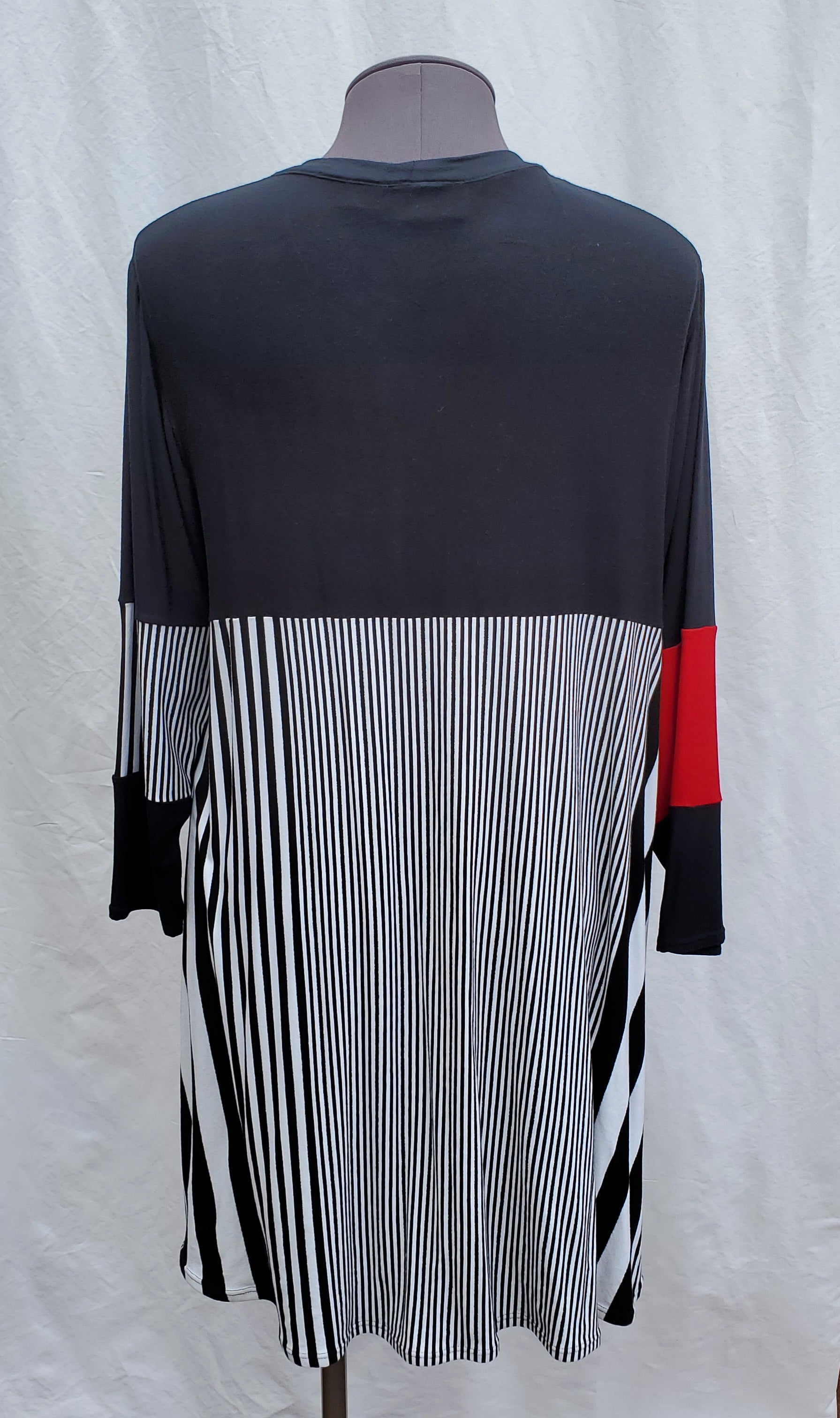 One-of-a-Kind Black and White Striped Tunic w/red accent