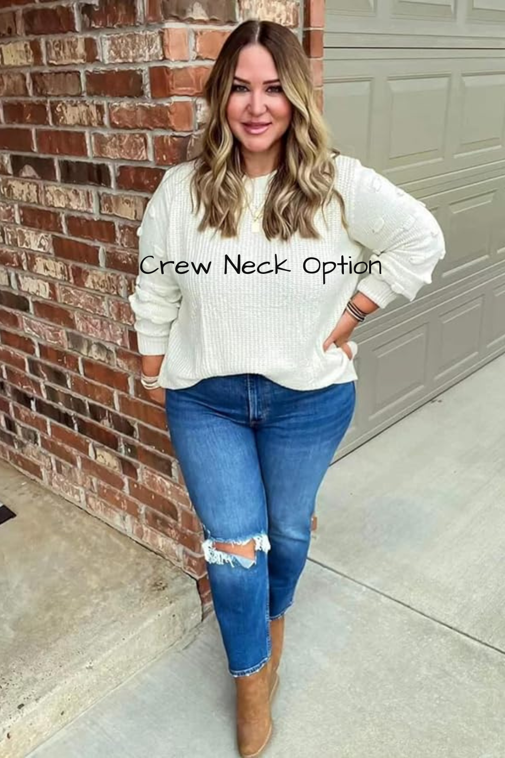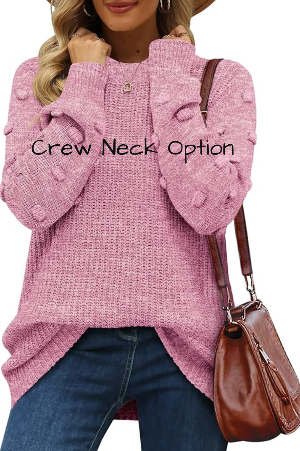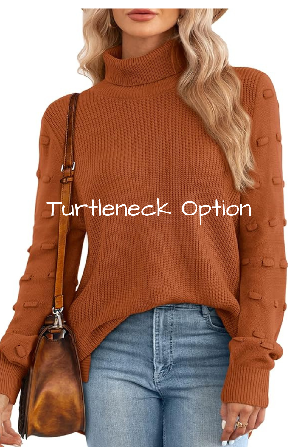 Experience cozy comfort with our Chunky Knit Pullover Sweater. Featuring a simple crewneck OR turtleneck and long sleeves with a unique basket weave pattern, it offers a soft touch against your skin.