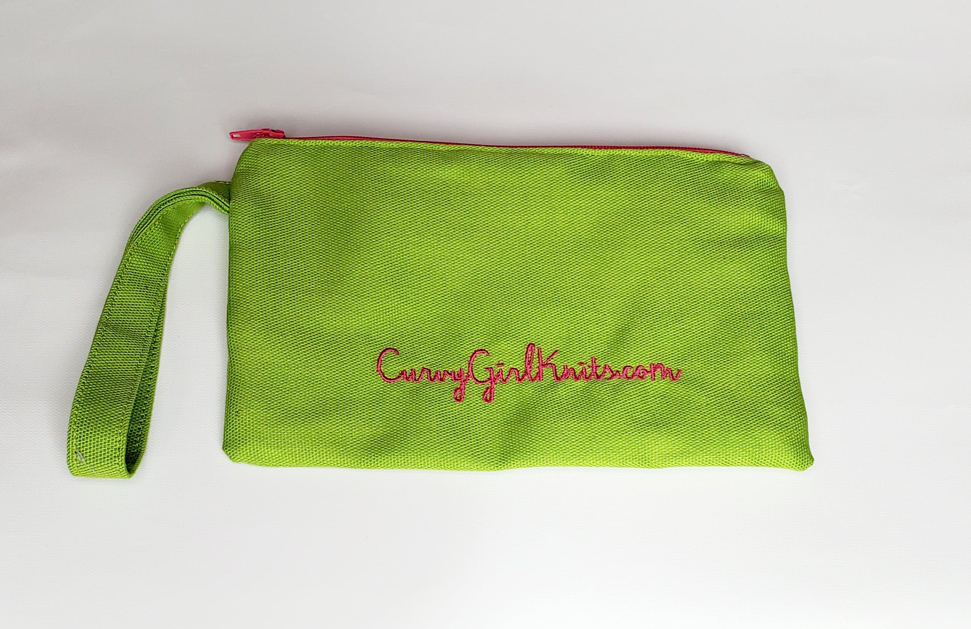 The bag measures 9" wide and 4" high. The bag is 100% cotton and is fully lined. The back side is blank except for our website embroidered at the bottom. The lining is random in color or pattern unless otherwise specified.Â