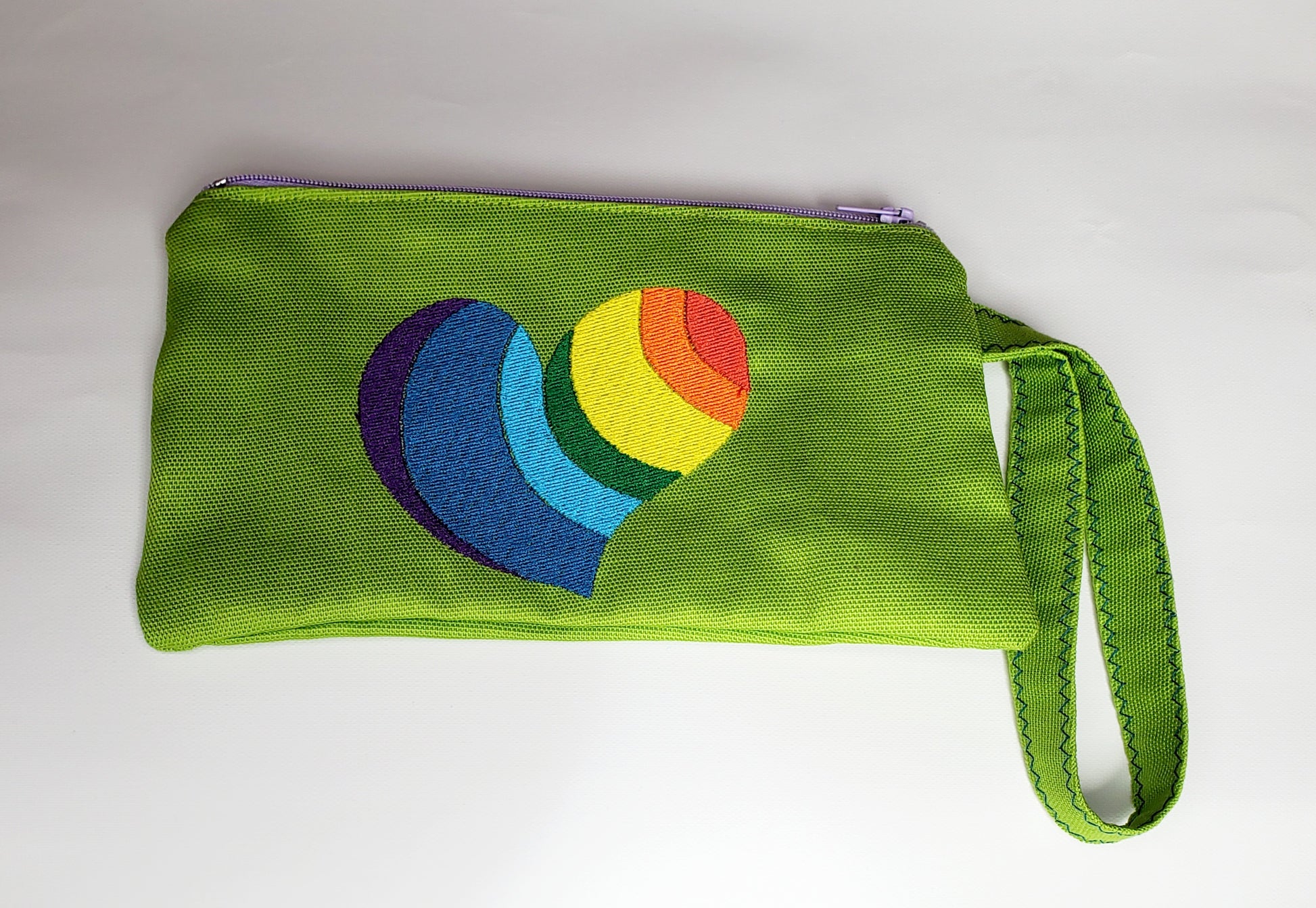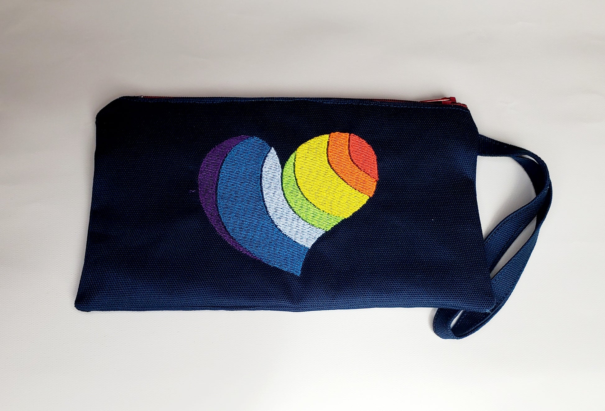 LQBTQ+ Emboidered Accessory Bag with Strap - Pride Heart