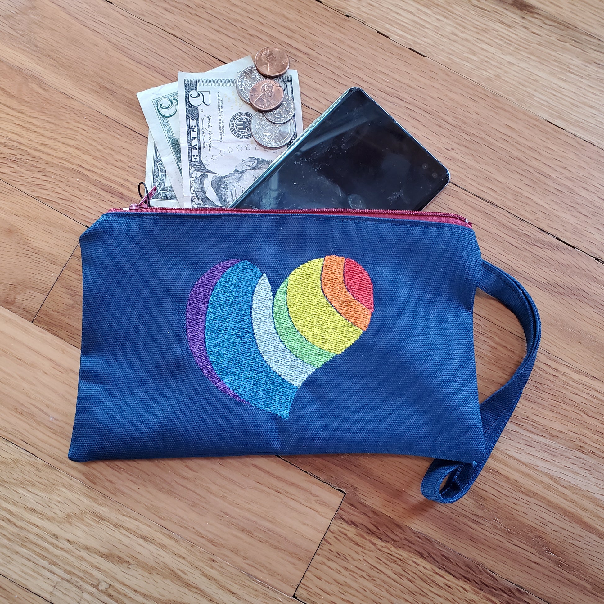 Celebrate your Pride with this versatile accessory bag! Perfect for your phone, credit card, cash, and lipstick. Wear it with the wrist strap to free your hands at the store or club. Choose your color and symbol! The ultimate gift for a friend.