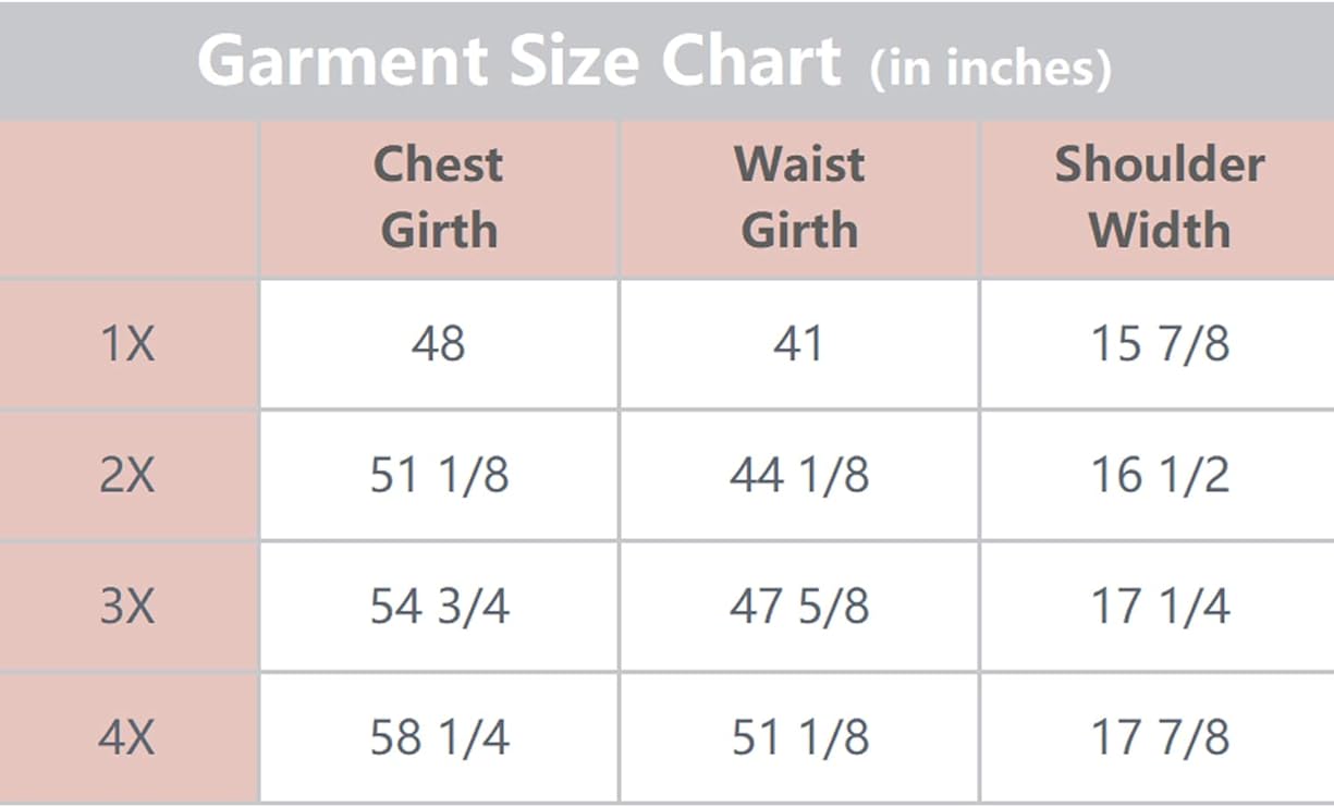 Sizes go up to 3X, so there's something for everyone. Just remember to consult the size chart below, and if you're between sizes, we recommend going up one size for the perfect fit.