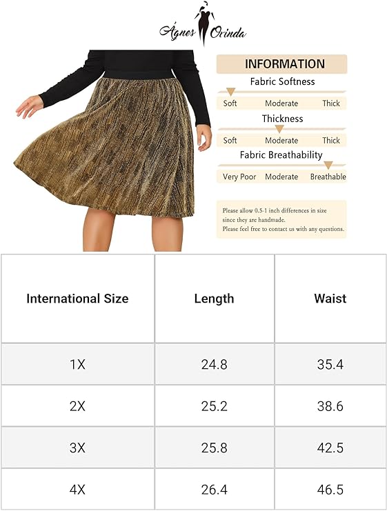 Metallic Plus Size Glitter Skirt in 2 Colors Plus Size up to 4X!