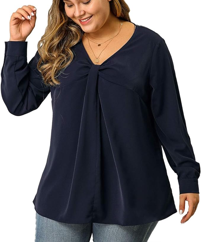 Discover our V Neck Twist Knot Long Sleeve Blouse is a perfect blend of casual style and chic elegance. With button cuffs and a lightweight design, it pairs seamlessly with jeans for an effortlessly stylish look.