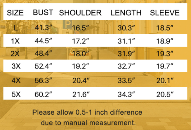 Sizes go up to 5X, so there's something for everyone. Just remember to consult the size chart below, and if you're between sizes, we recommend going up one size for the perfect fit. This shirt runs true to size on chart. This shirt is LONG and a true tunic for a taller gal and a great short dress for the petite stature!