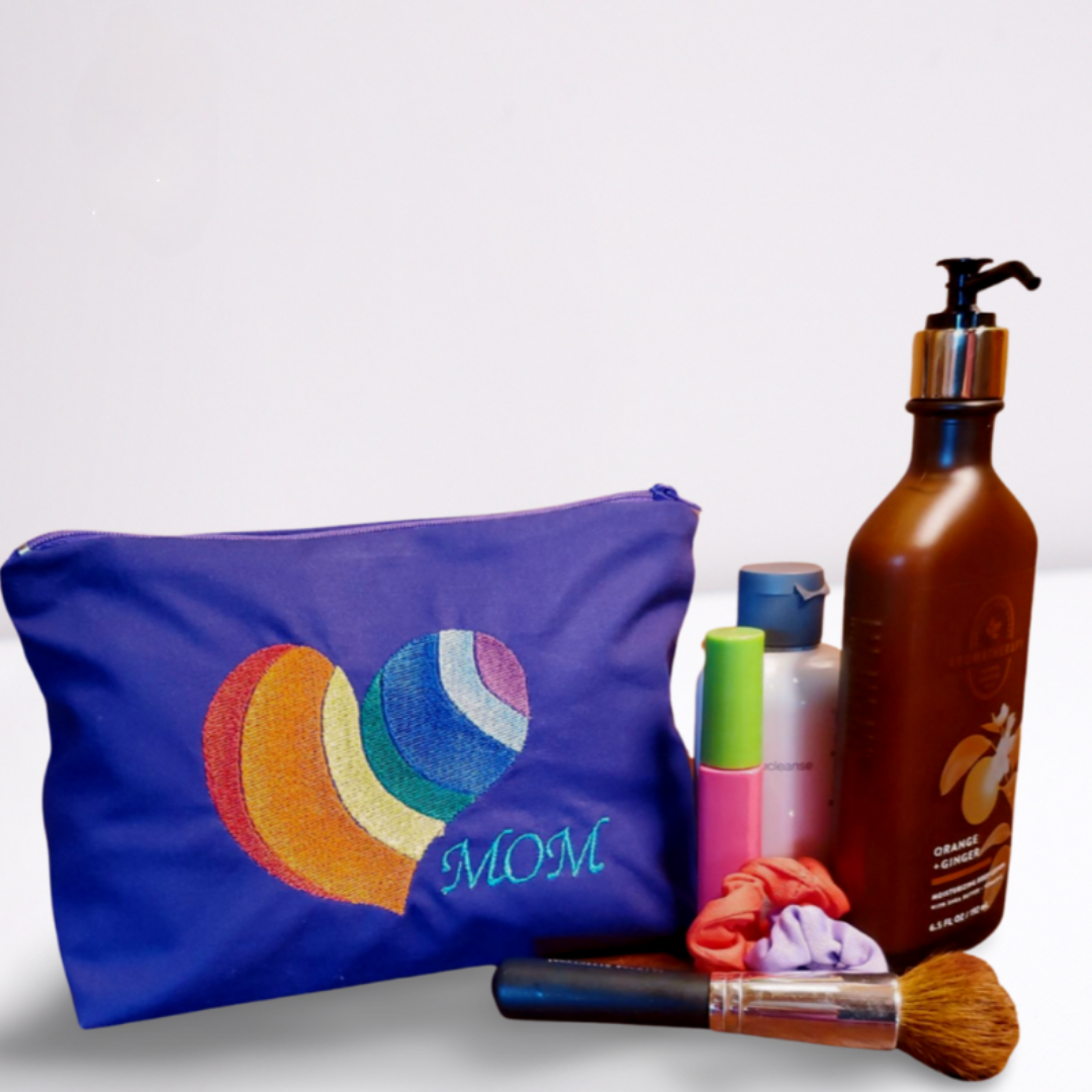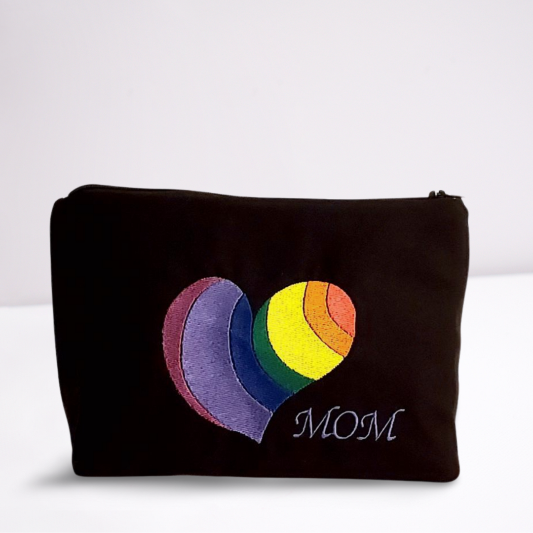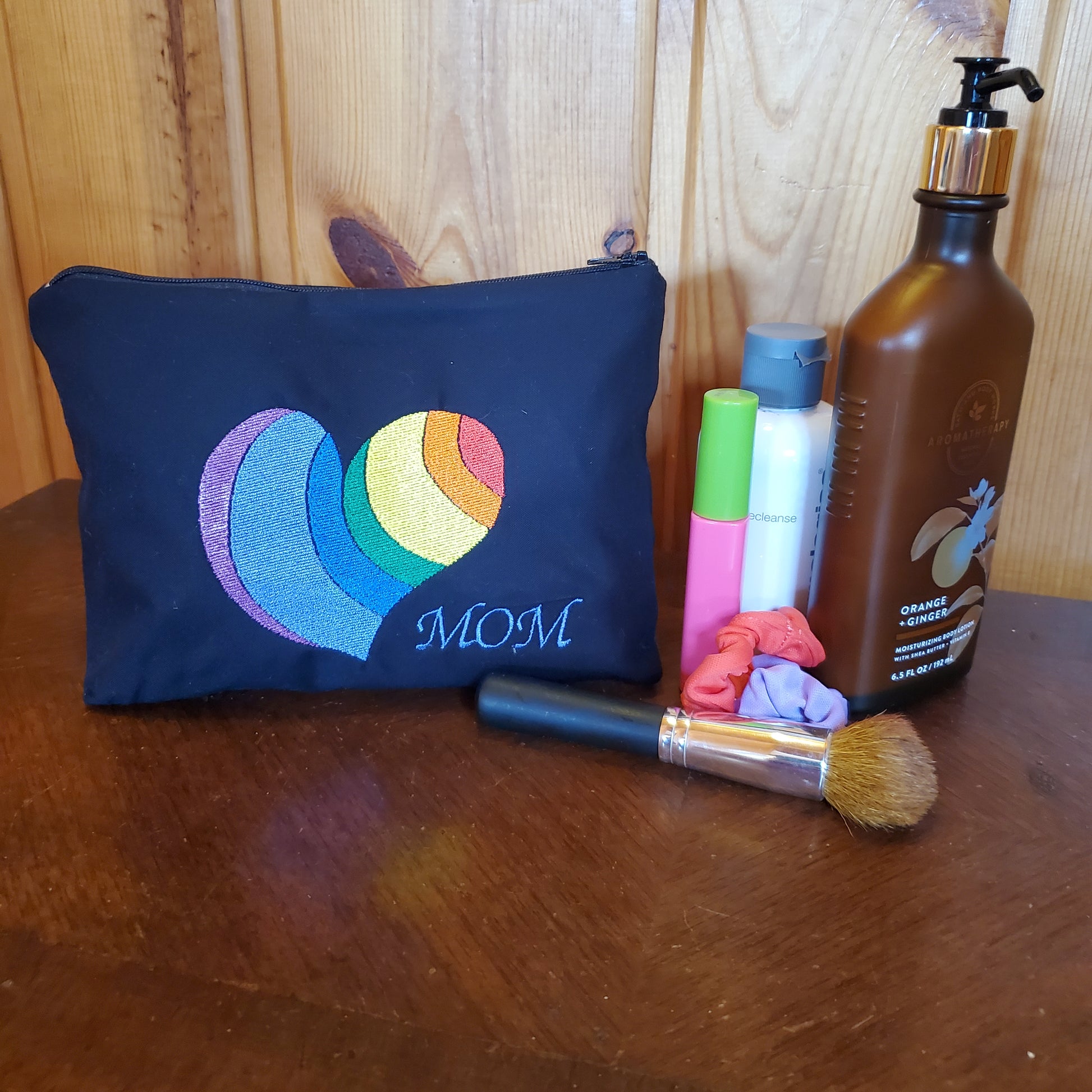 LGBTQ+ Pride Mom Embroidered Make-up/Accessories Bag. Comes in a variety of colors!