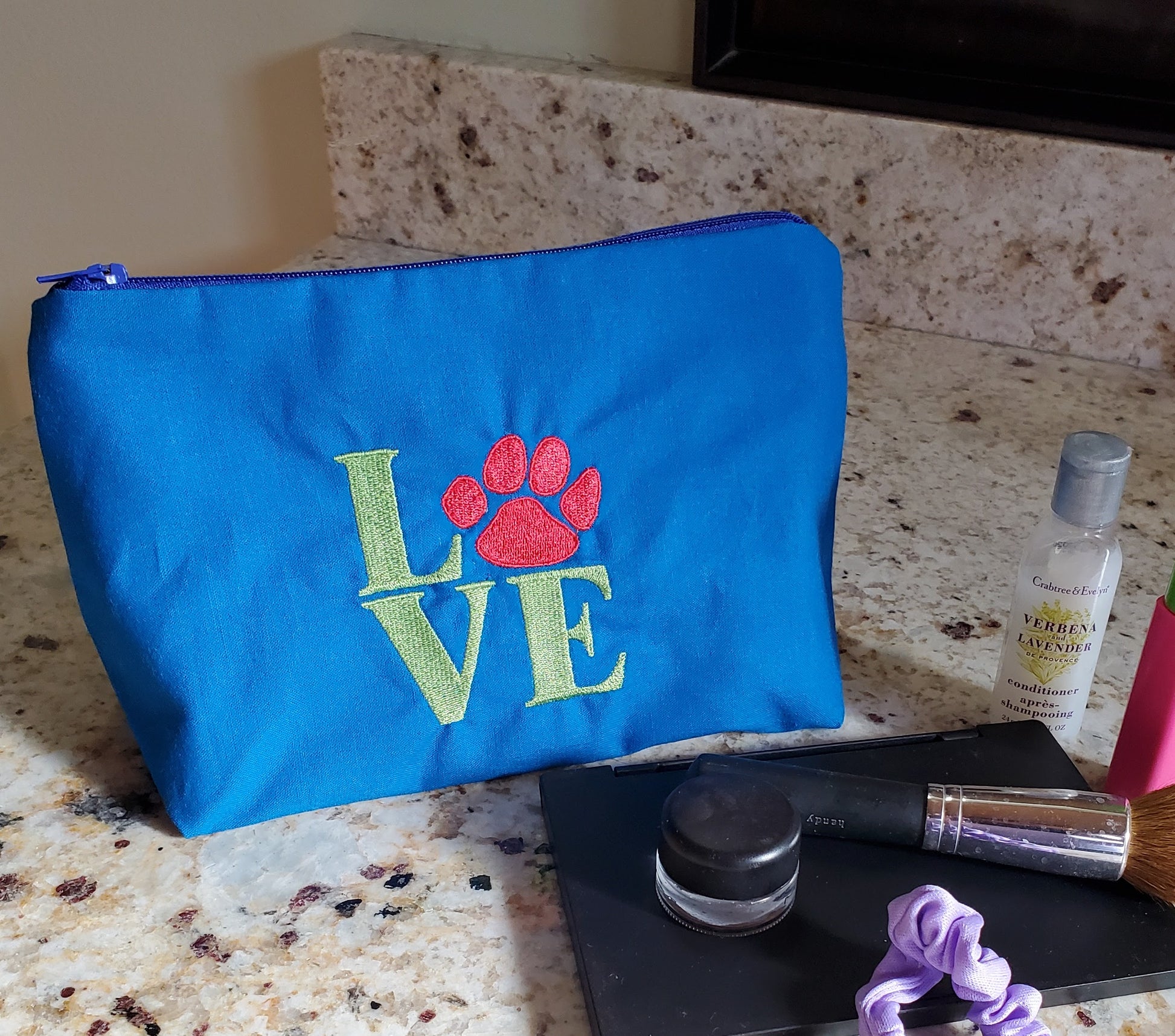 I LOVE my Dog/Cat Paw Embroidered Make-up/Accessories Bag. Comes in a variety of colors!
