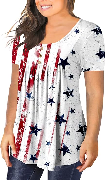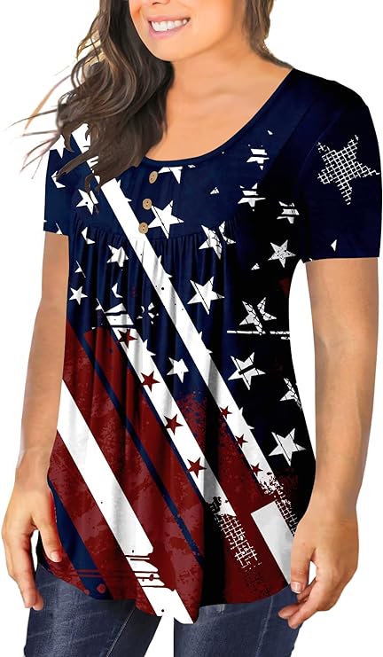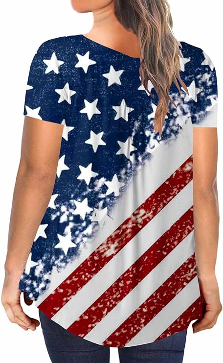 Our shirt is not only stylish but also versatile. Pair it with your favorite jeans or shorts for a casual summer look, or dress it up with a skirt for a patriotic-themed party or vacation.
