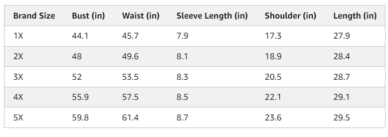 Sizes go up to 5X, so there's something for everyone. Just remember to consult the size chart below, and if you're between sizes, we recommend going up one size for the perfect fit. This top does run true to size and is a full waisted shirt. It will work great for an apple shape! Mine felt a little big on me so I re-ordered one size smaller to a 4X.