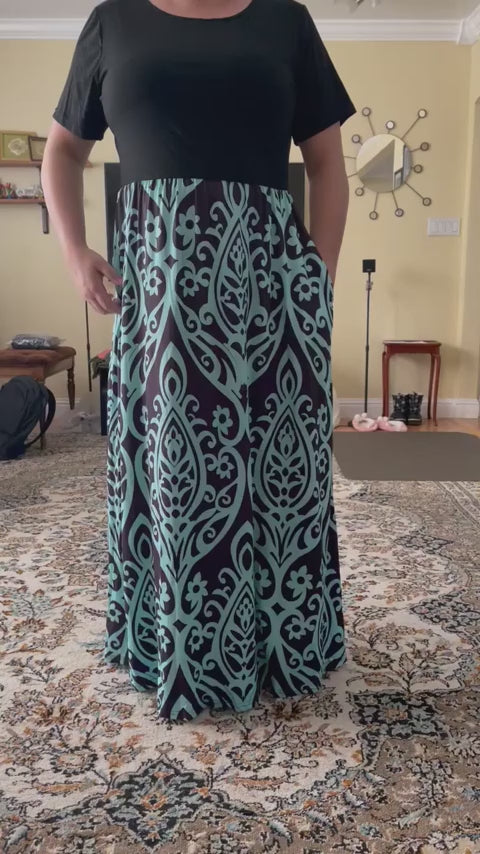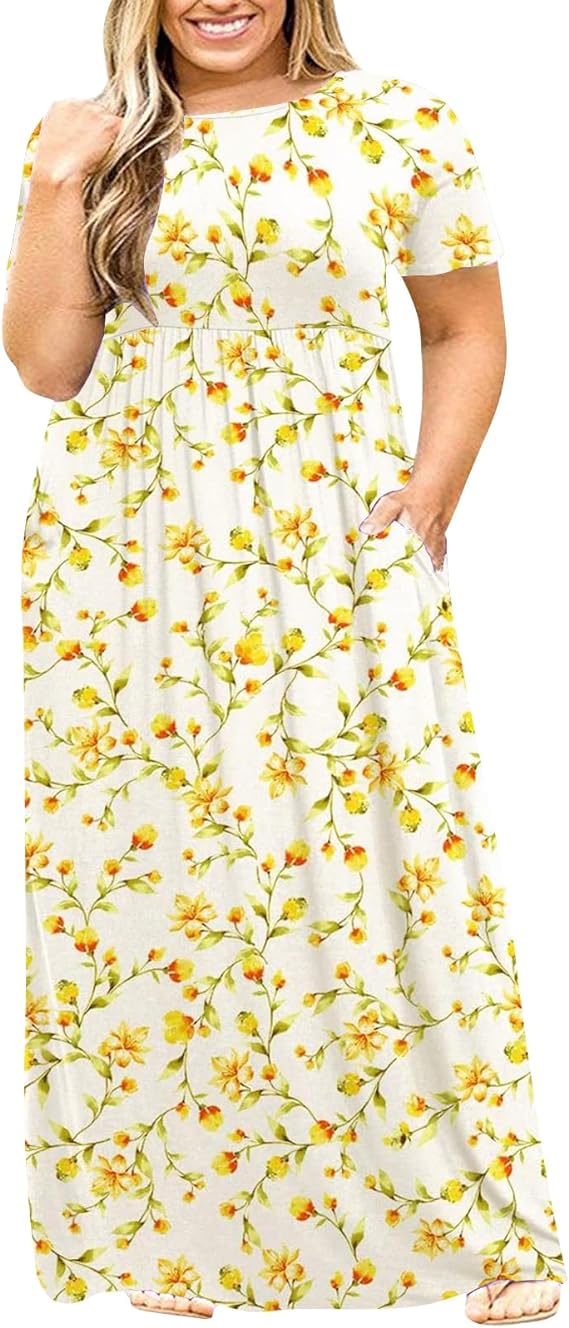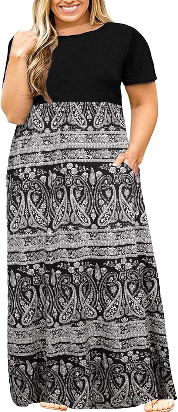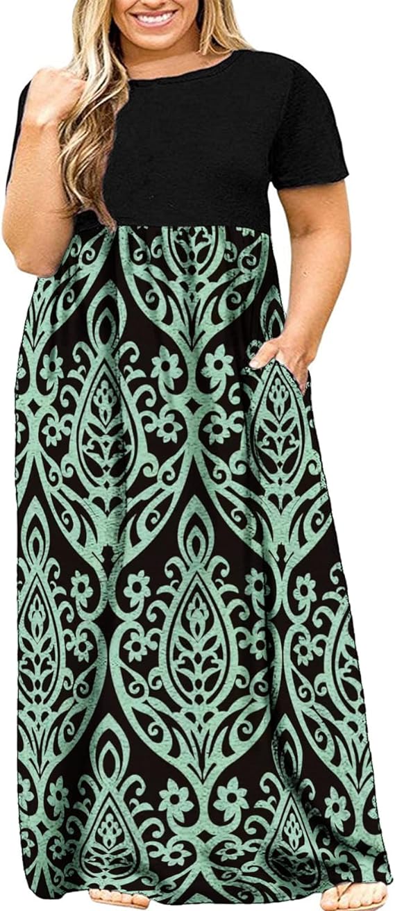 This lightweight dress is ideal for plus-size curvy gals, featuring practical two side pockets, a round neck, and almost floor-length design. The elastic at the waist and high waistline enhance your silhouette, making it a go-to piece for any occasion. Whether you’re looking for a plus-size maxi dress or a loose, plain long t-shirt dress, this versatile piece fits the bill.