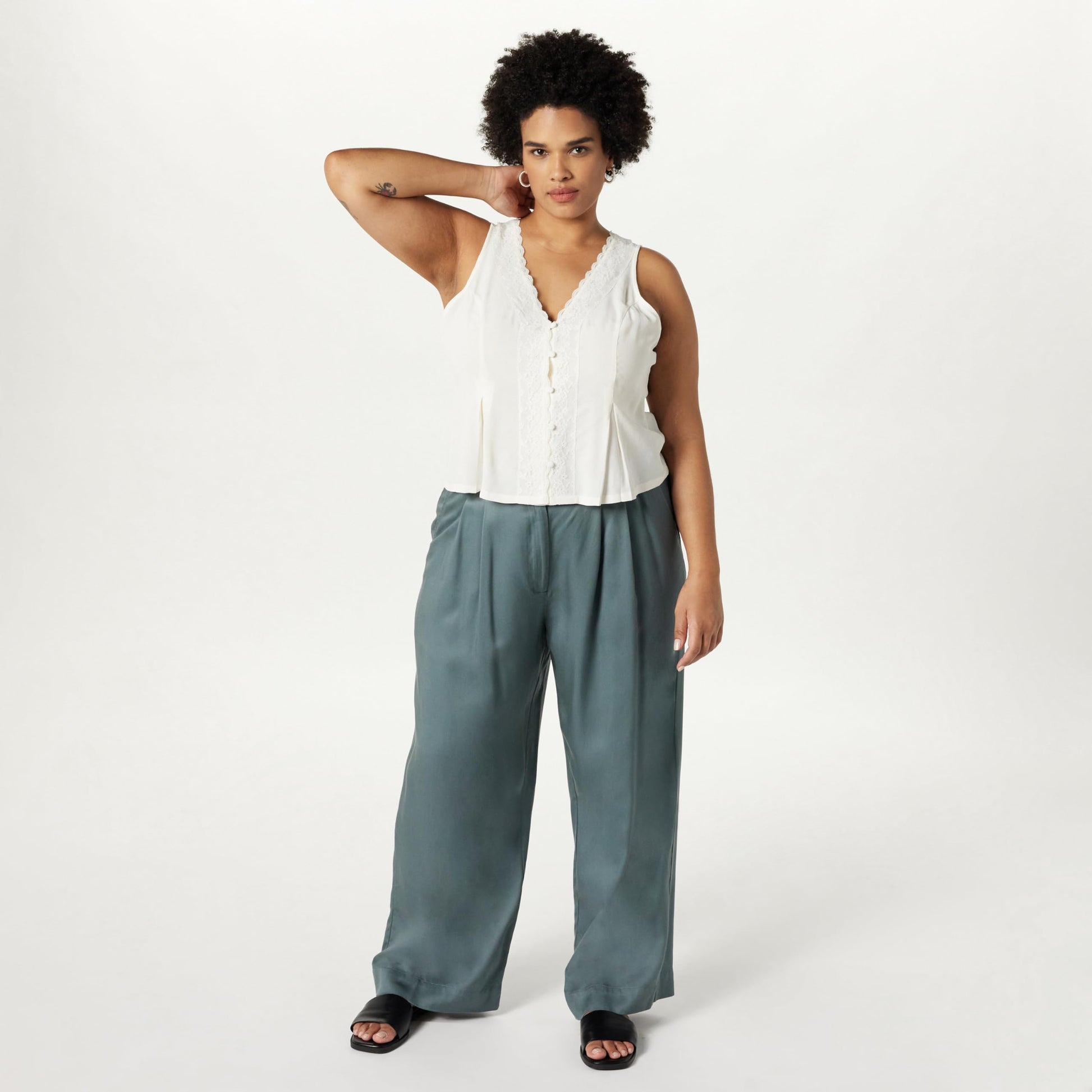 Loose-Fit: designed for comfort, size down once if you prefer a closer fit. Lightweight drapey tencel fabrication.