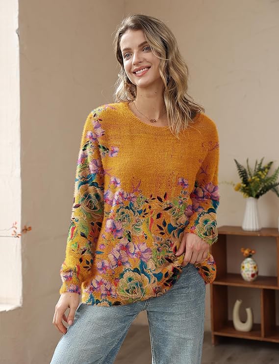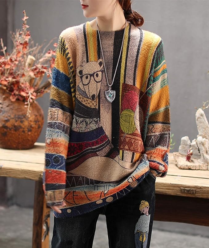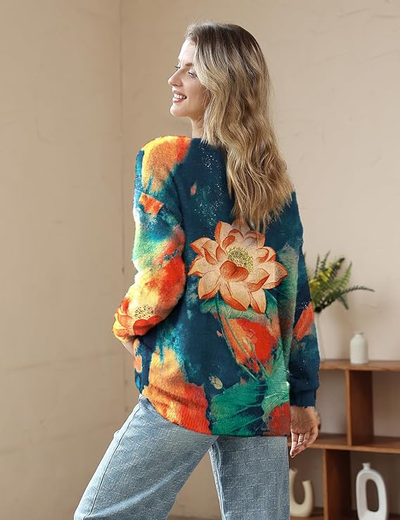 Featuring eye-catching designs with graphic prints, rich colors, and vibrant patterns, our oversized sweaters add a pop of personality to your wardrobe. The loose fit, crewneck, and long sleeves ensure a casual yet stylish look, perfect for any occasion.