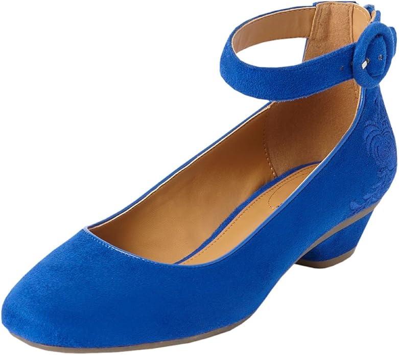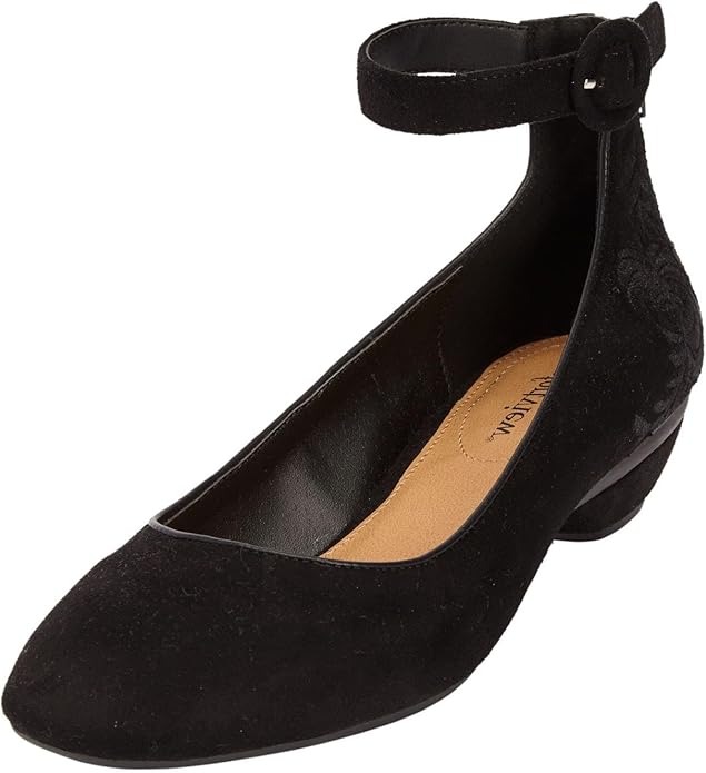 Details: Pump up all of your favorite looks with this ultra-stylish suede-like silhouette. Complete with a full back zipper for easy on/off, this is the pair you'll want to live in all season long. Suede-like upper Elastic gore on ankle strap Full back zip closure Padded insole Flexible, skid-resistant outsole 1¼' stable heel Suede-like pumps available in full and half sizes 7-11, 12 M, W, WW